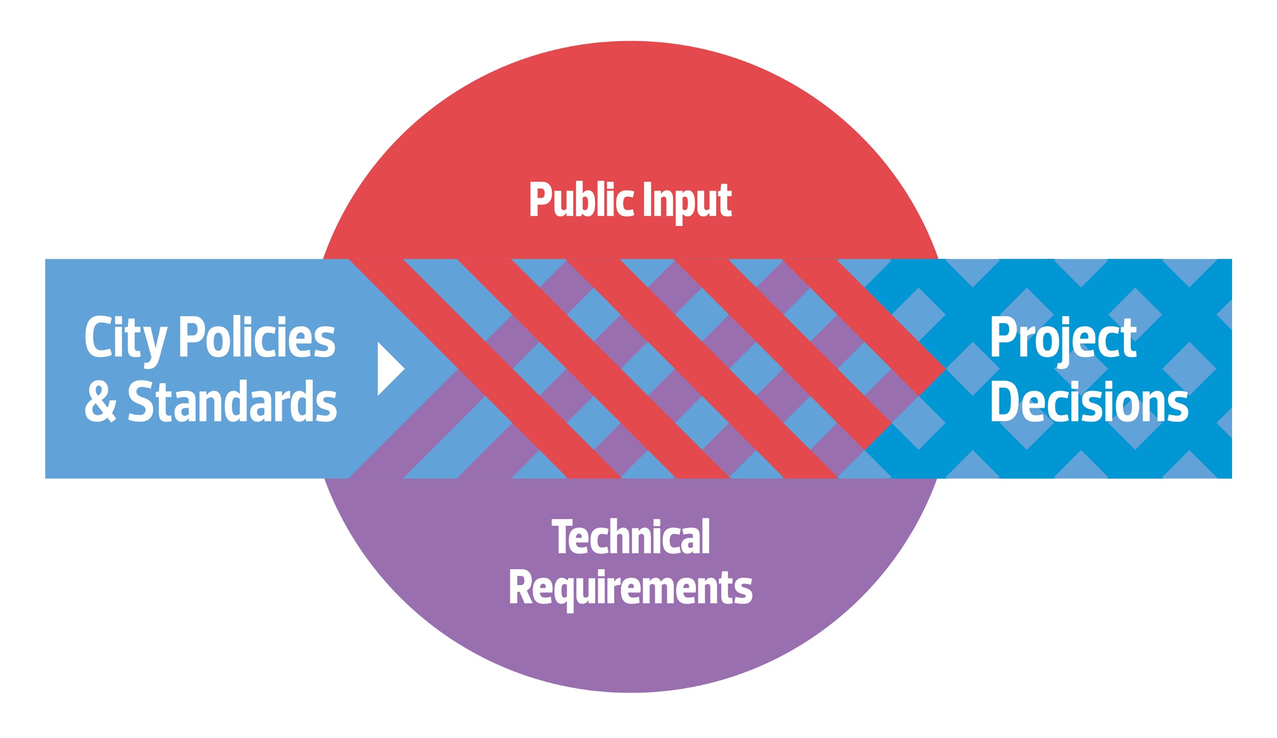 City policies and programs, including the Complete Streets Design and Construction Standards, Safe Mobility Strategy and Winter City Strategy, are central to guiding Neighbourhood and Alley Renewal designs. While adhering to these policies and meeting technical requirements is paramount, we also prioritize input from residents who know their neighborhood best. By integrating technical expertise with community feedback, we strive to ensure the draft design aligns with both technical standards and public needs, making adjustments where feasible based on this input.